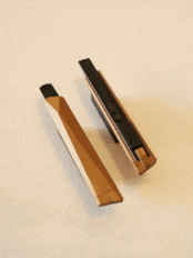 もともと革の裁断用として設計したプロユースの道具を、さらにリデザインし、こだわりの文具であるカッターナイフとして昇華させたものです。
