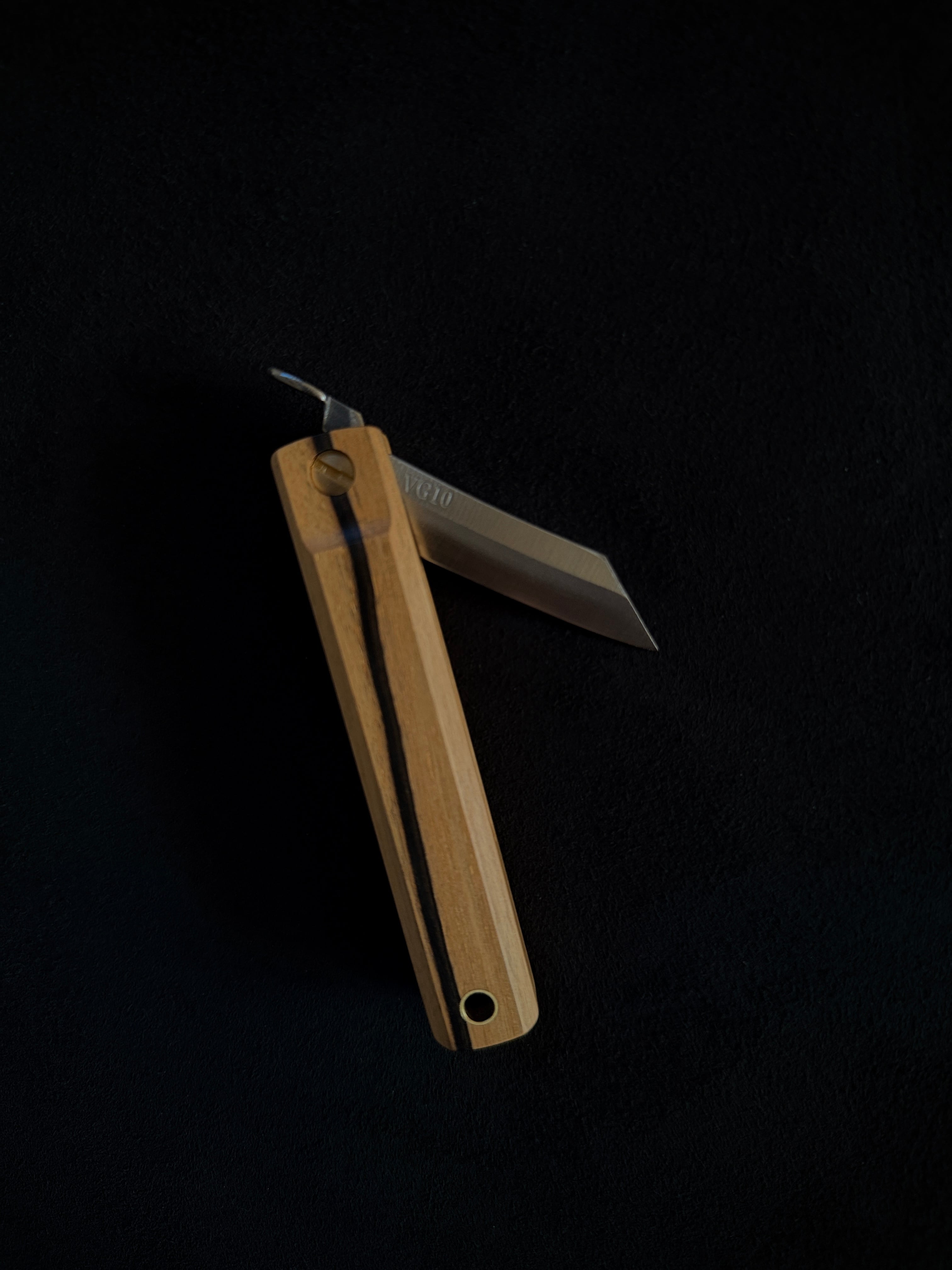 伝統的な日本の折り畳みナイフ「肥後守」に木製の柄を付けました。